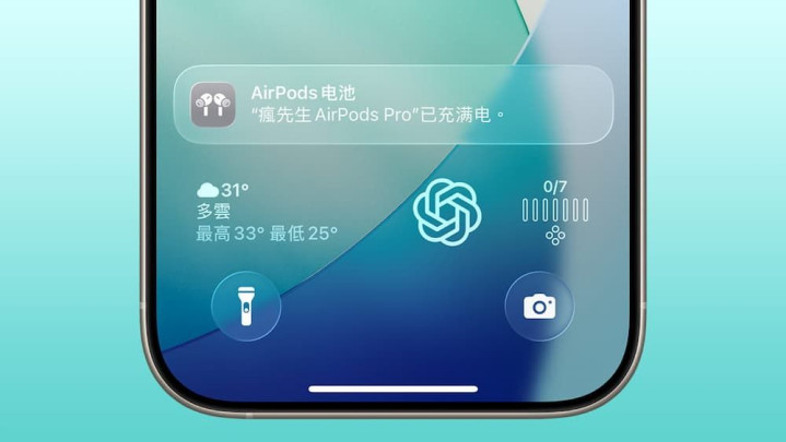 iOS 26最大亮点「 液体玻璃 」液态玻璃设计,也同时整合到锁定画面上,在锁定画面上的时钟、通知、快捷键,融合半透明、可反射与折射的材质,能够实现如同玻璃感的光影流动感,不光是视觉美感,整体也更聚焦和层次分明。