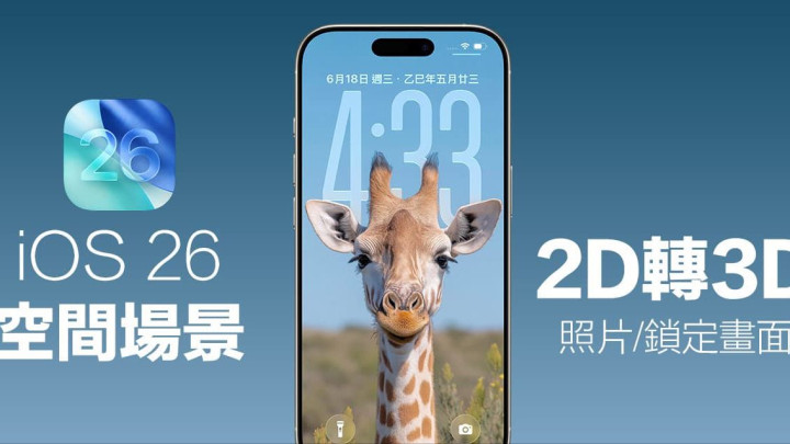 iOS 26 也针对锁定画面导入「空间场景」(Spatial Scenes)新功能,能够直接将 iPhone 现有2D照片瞬间转成立体3D桌布,而且只要选择照片,系统会自动运算前后景深。